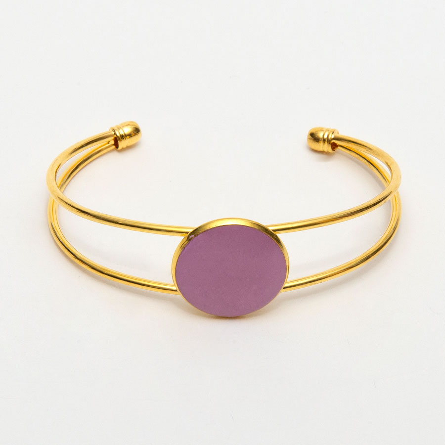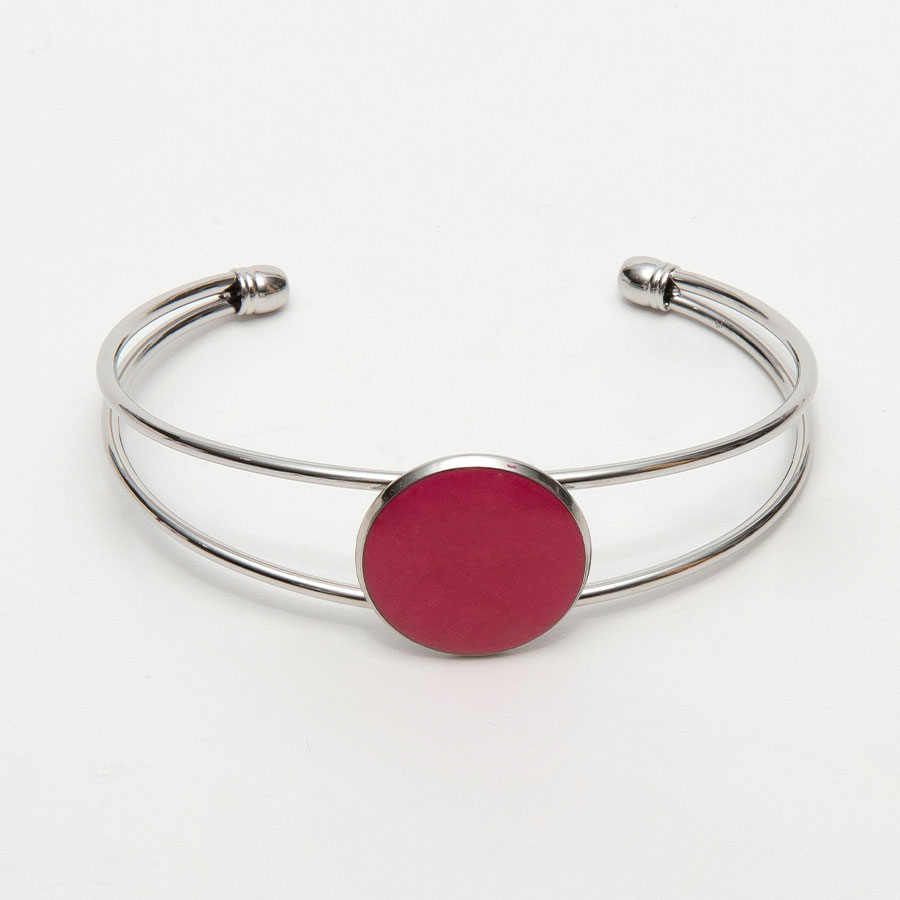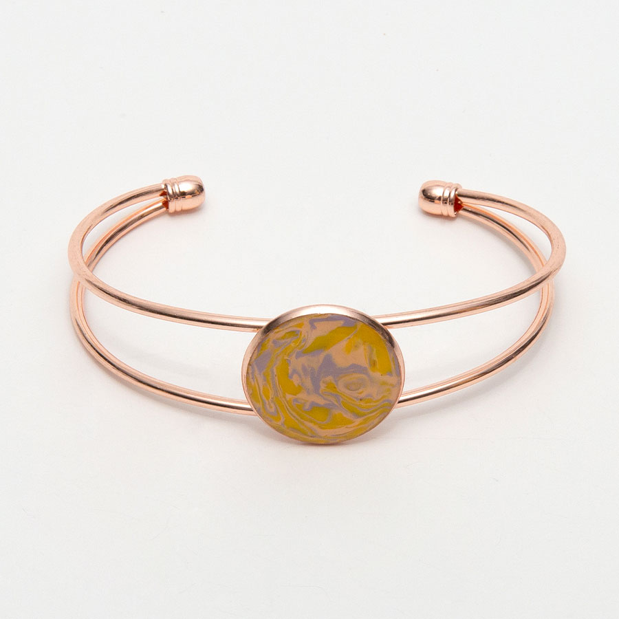 The cuff bracelet is a base metal and comes in your choice of silver or rose gold. The center is made from your flowers and is finished with a domed glaze.