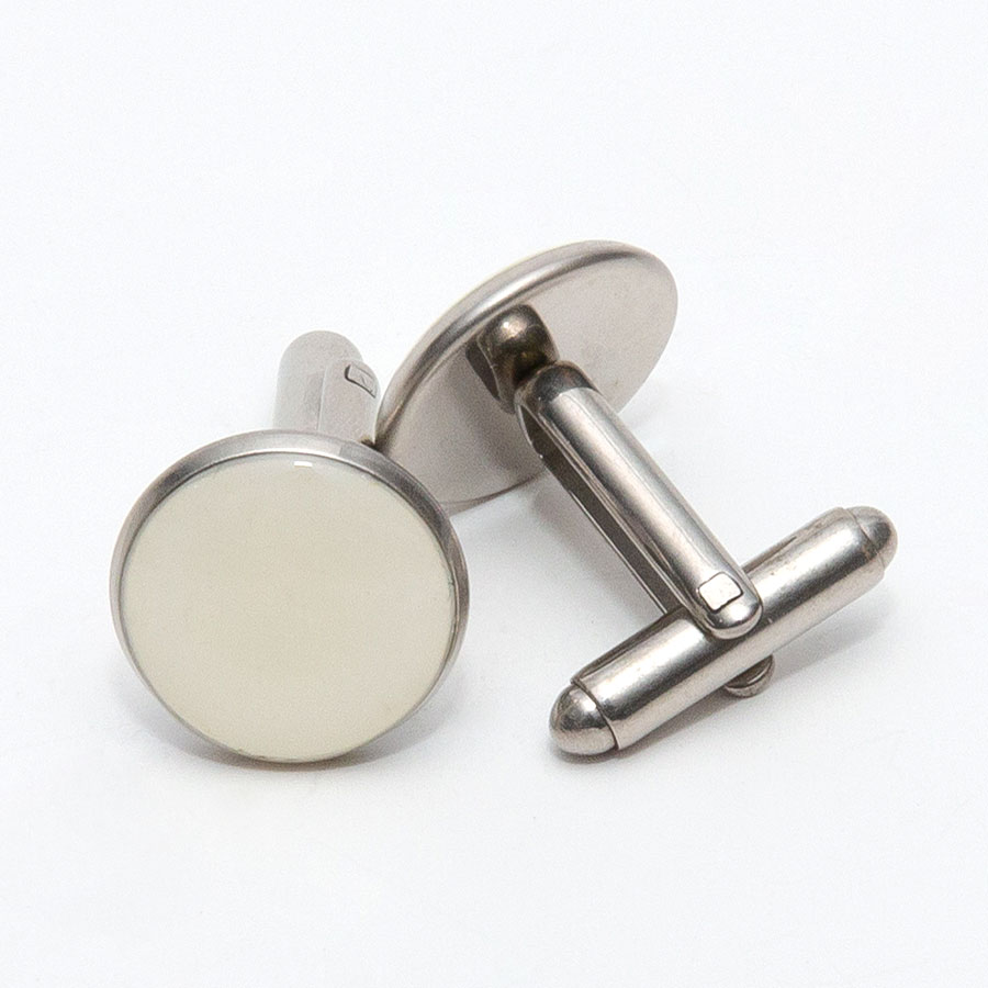 The cuff links are stainless steel. The center is made from your flowers and is finished with a domed glaze.